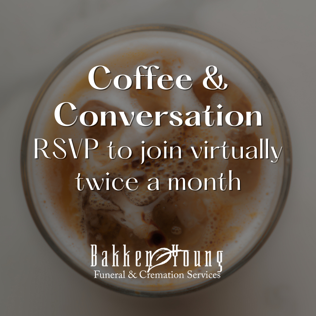 RSVP for Coffee & Conversation by email to: Julia Rajtar, Grief Support Coordinator at julia@bakken-young.com. A Zoom meeting link will be sent to you.