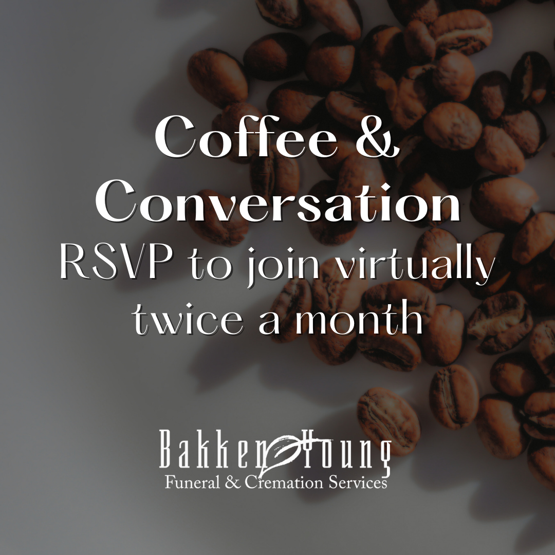 RSVP for Coffee & Conversation by email to: Julia Rajtar, Grief Support Coordinator at julia@bakken-young.com. A Zoom meeting link will be sent to you via email.
