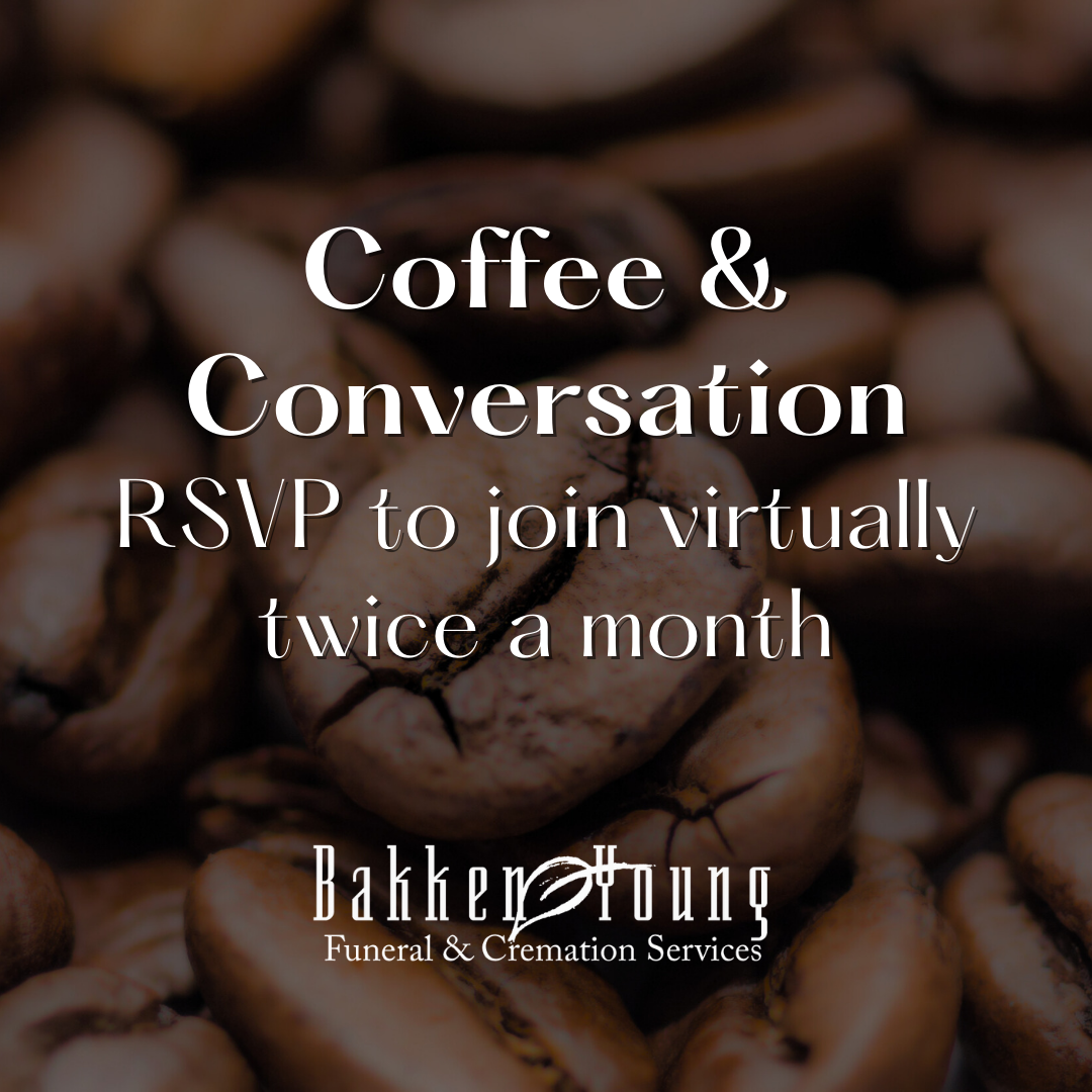 RSVP for Coffee & Conversation by email to: Julia Rajtar, Grief Support Coordinator at julia@bakken-young.com. A Zoom meeting link will be sent to you via email.