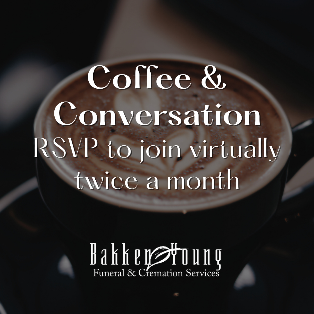 RSVP for Coffee & Conversation by email to: Julia Rajtar, Grief Support Coordinator at julia@bakken-young.com. A Zoom meeting link will be sent to you via email.