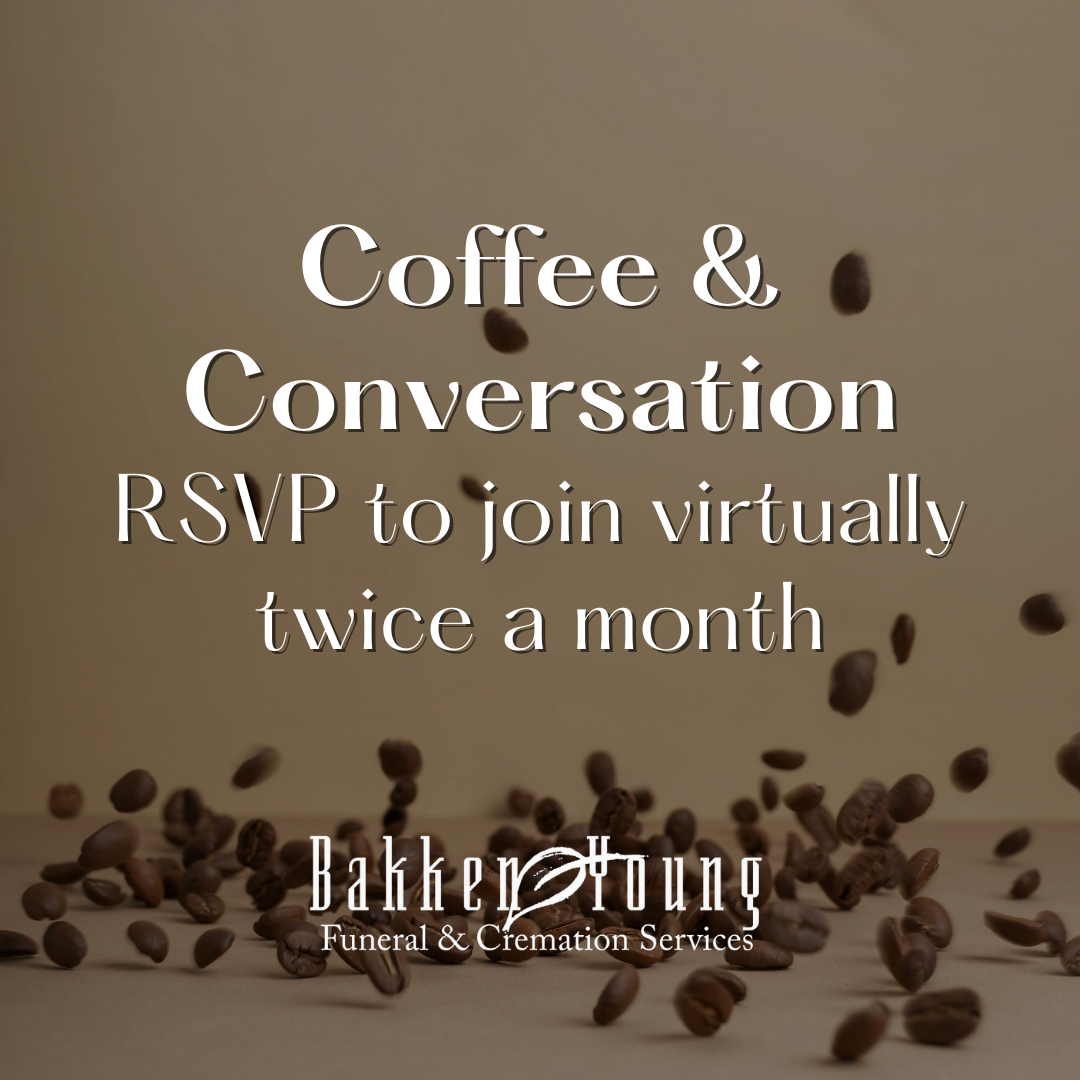 RSVP for Coffee & Conversation by email to: Julia Rajtar, Grief Support Coordinator at julia@bakken-young.com. A Zoom meeting link will be sent to you via email.